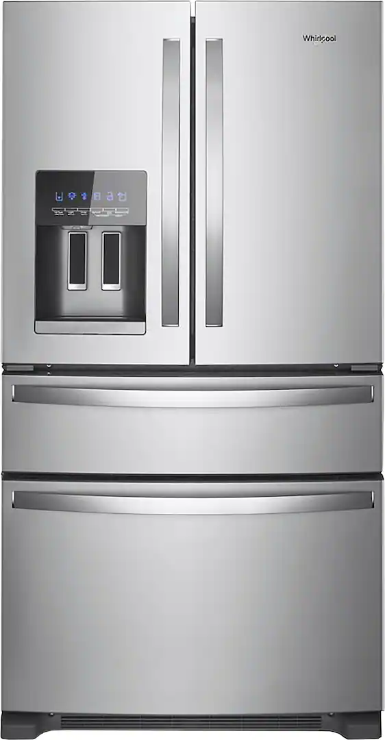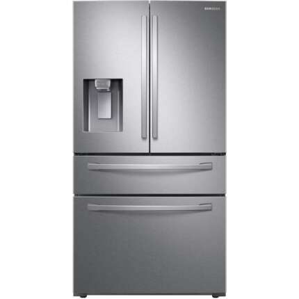• 24.5 cu ft standard‑depth 4‑door French door refrigerator with water and ice dispenser