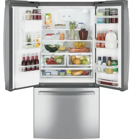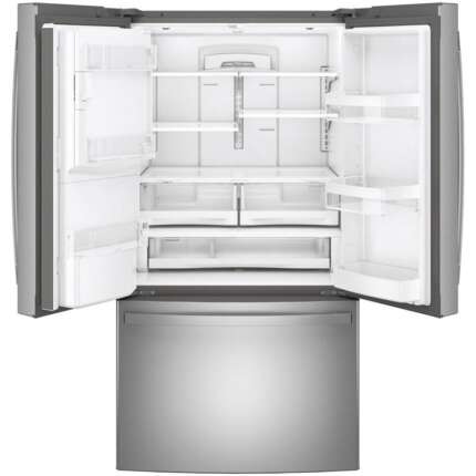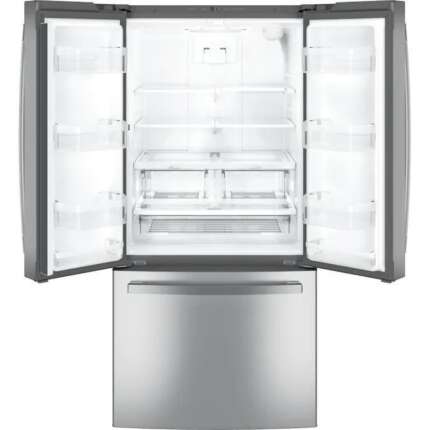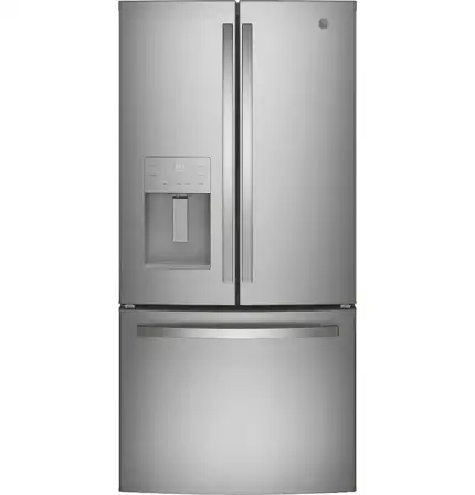 GE Standard-Depth 27-cu ft 3 -Door French Door Refrigerator with Ice Maker with Water Dispenser (GNE27JYMFS)