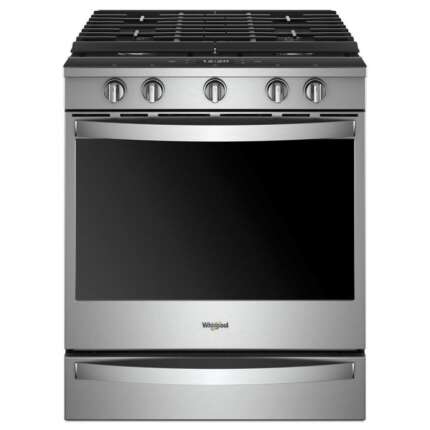 • 30‑inch slide‑in natural gas range with 5 burners for versatile cooking