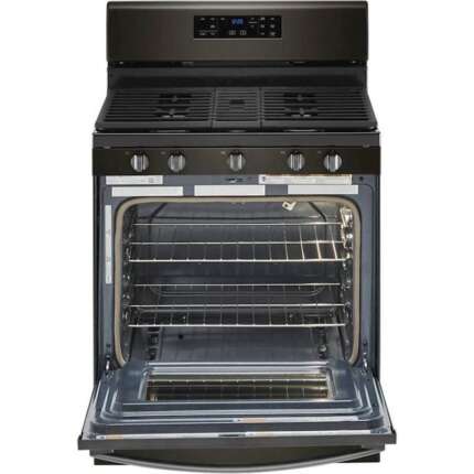 30‑inch freestanding natural gas range in a sleek black finish.