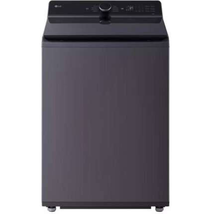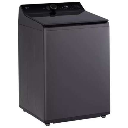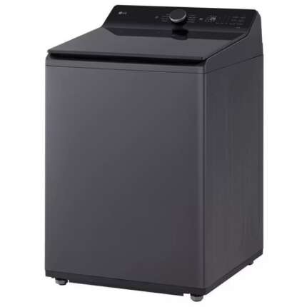 • Extra large capacity top‑load washer in a modern matte black finish