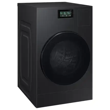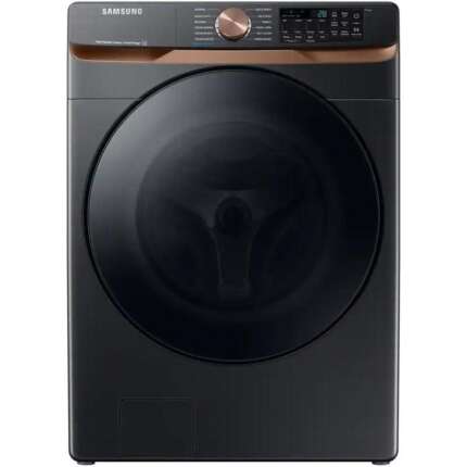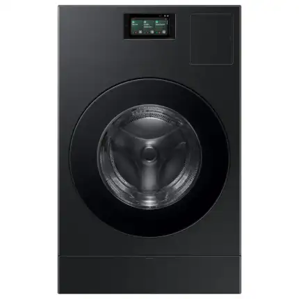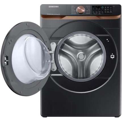 • Extra large capacity front‑load washer in a sleek brushed black finish.