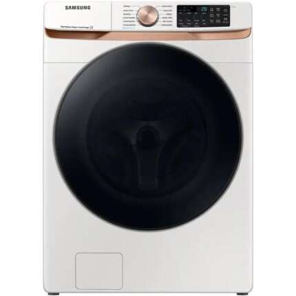 • Extra large capacity front‑load washer in an elegant ivory finish.