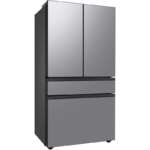 - Three-door French door layout allows organized storage and easy access