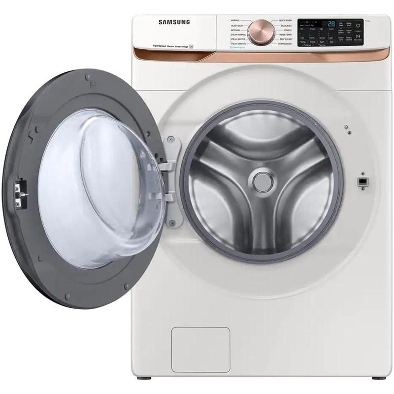 Extra large capacity front‑load washer in an elegant ivory finish.