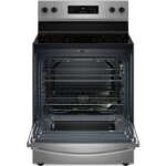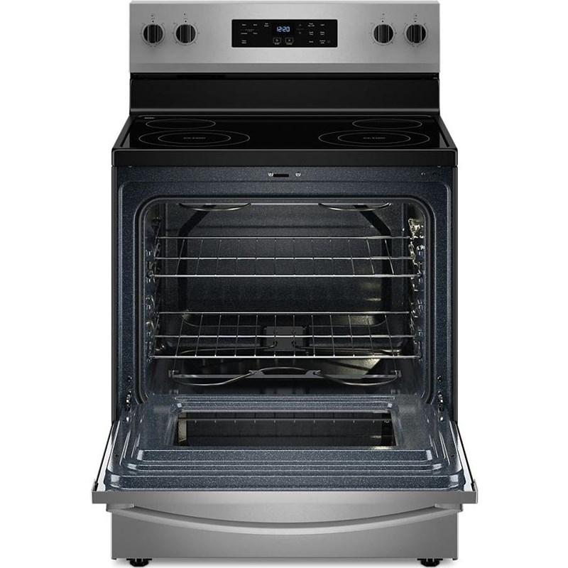 • 30‑inch freestanding electric range in a sleek stainless steel finish.