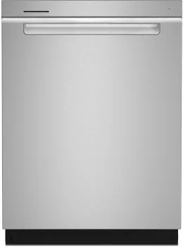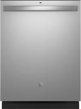 The GE GDT550PYRFS is a 24-inch built-in, top-control dishwasher featuring a fingerprint-resistant stainless steel exterior, a 52 dBA noise level, and a 16-place setting capacity