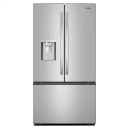 • 29.58 cu ft standard‑depth 3‑door French door refrigerator with water and ice dispenser